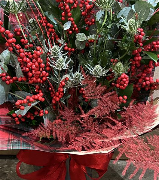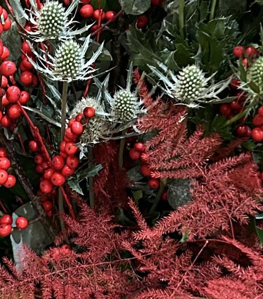 This arrangement can also be used as a door swag if hung upside down with bow tied around stem