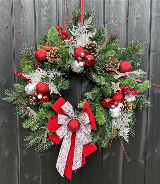 Fresh mixed spruce door wreath, the perfect addition to any festive doorway