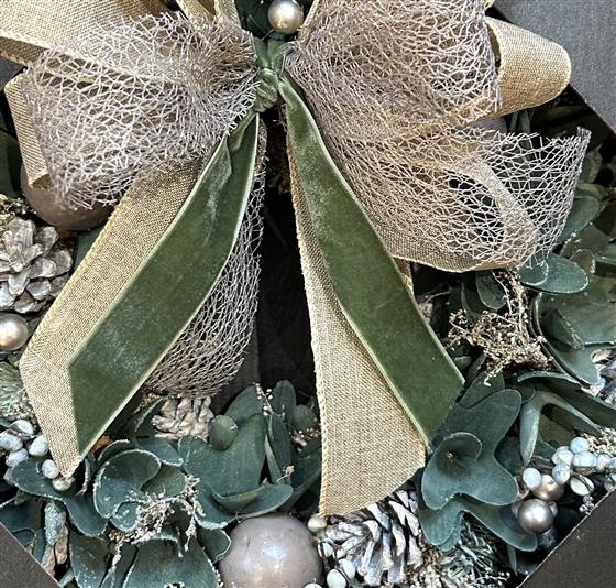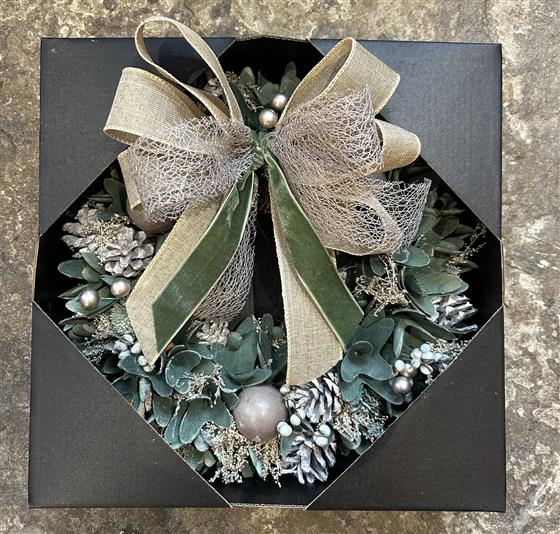 Dried wreath suitable for indoor or outdoor. Measures approx 28cm.